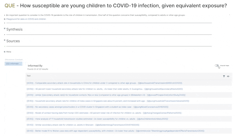 The discourse context component adds a "higher-signal" linked references section to each discourse node, that allows you to explore discourse relations (e.g., inform, support, etc.) between this node and other nodes in your discourse graph.